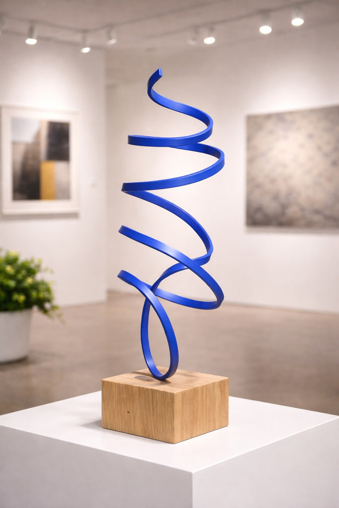 Acier sur support chêne brut